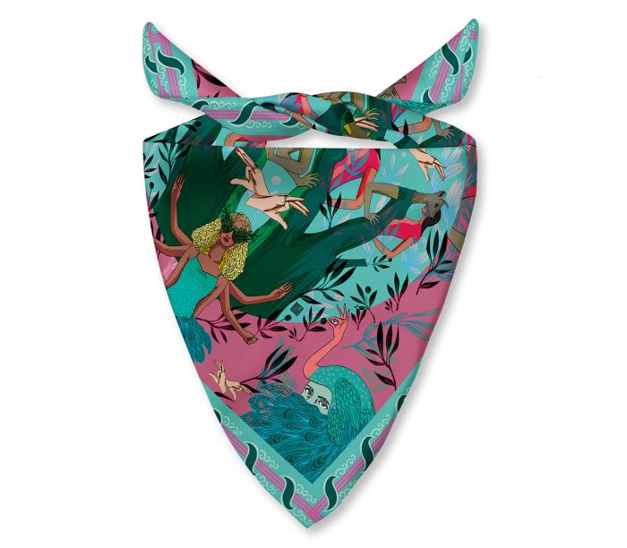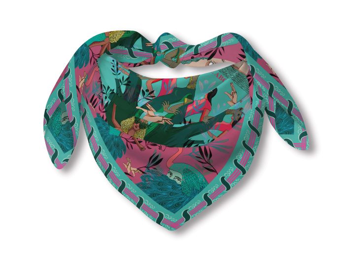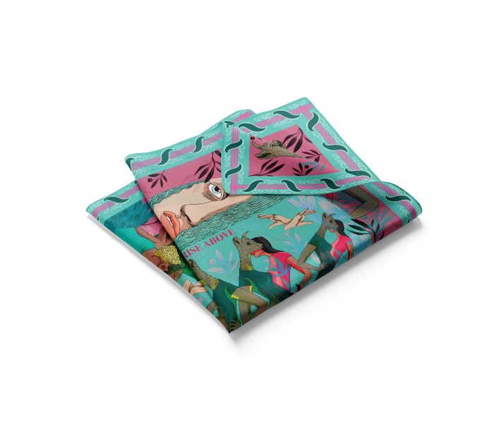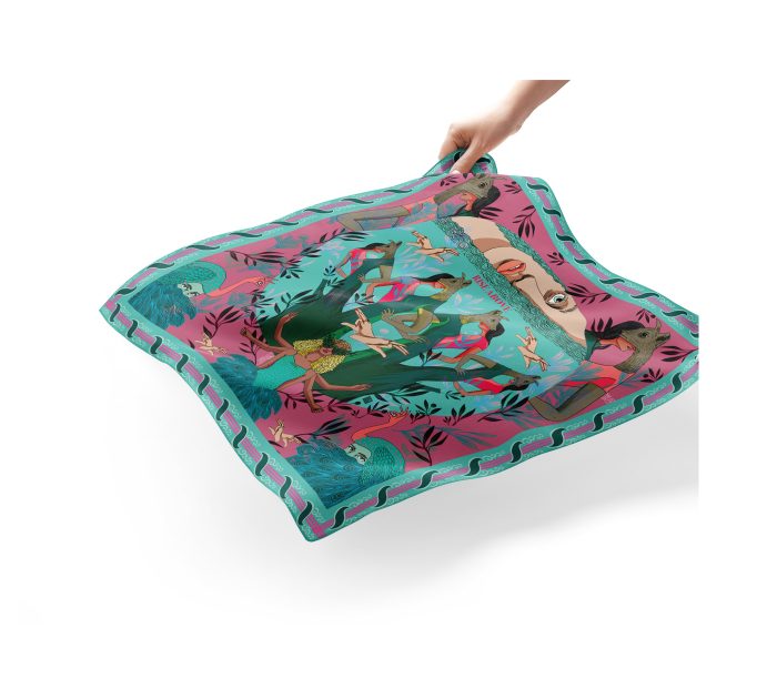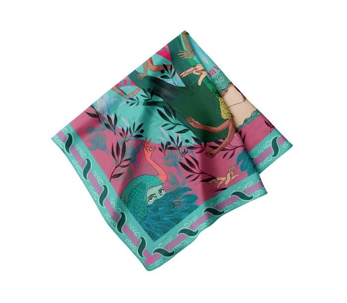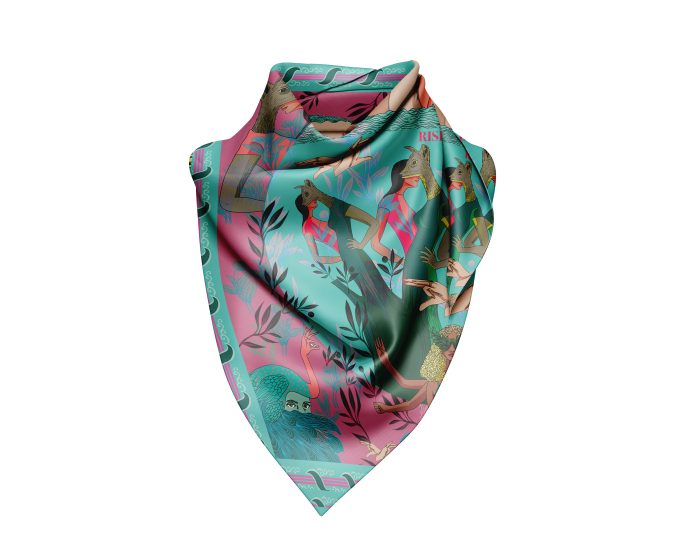 100% Silk Twill Digitally printed with vibrant and stunning colors. Hand rolled edges.