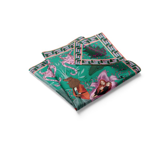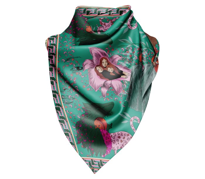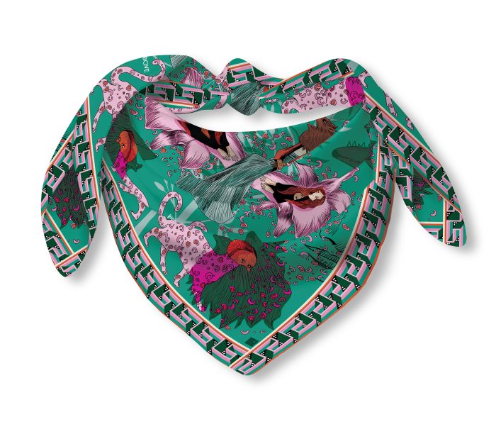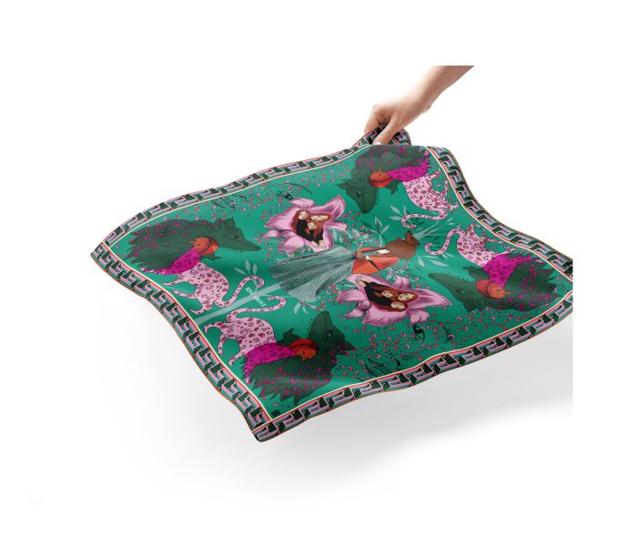 100% Silk Twill Digitally printed with vibrant and stunning colors. Hand rolled edges.